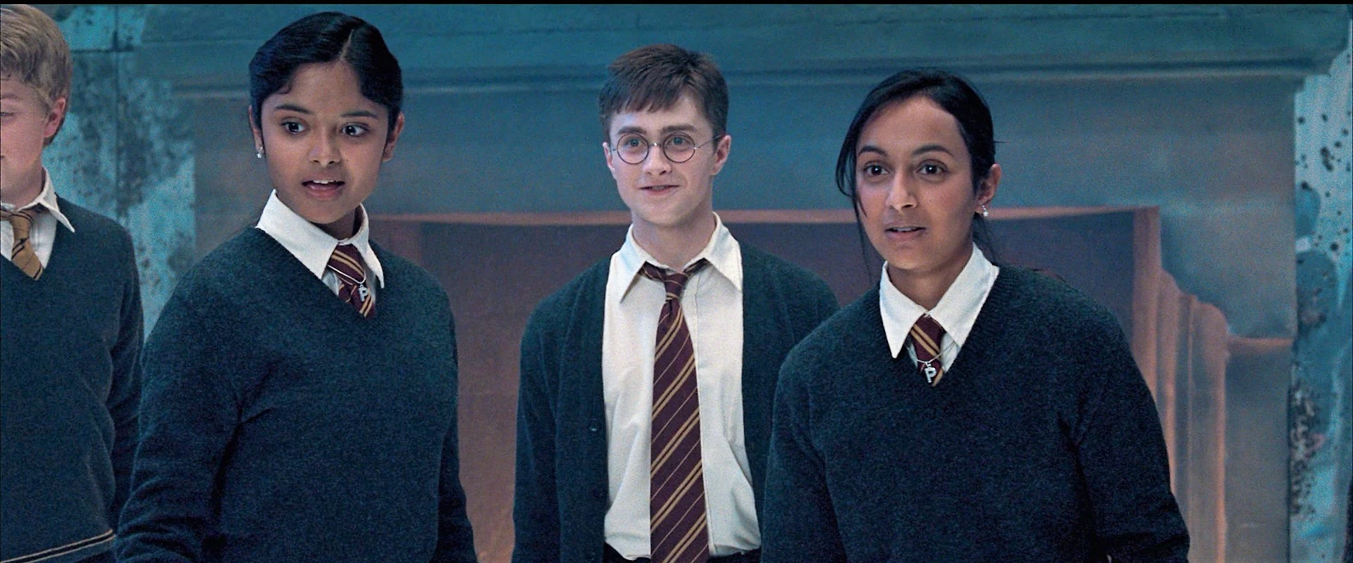 Harry Potter en Ron Wemel met de Patil Zusjes