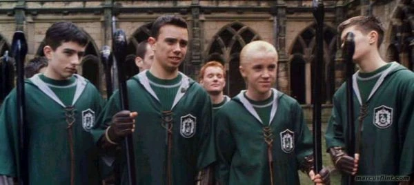 - In Harry Potter en de Geheime Kamer koopt Lucius Malfidus nieuwe Nimbus 2001-bezemstelen voor het hele team, zodat Draco opgenomen wordt.